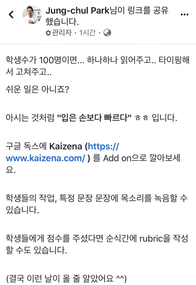구글 이노베이터 박정철(단국대) 교수님의 페이스북 그룹 포스팅. 도움이 많이 될 듯!