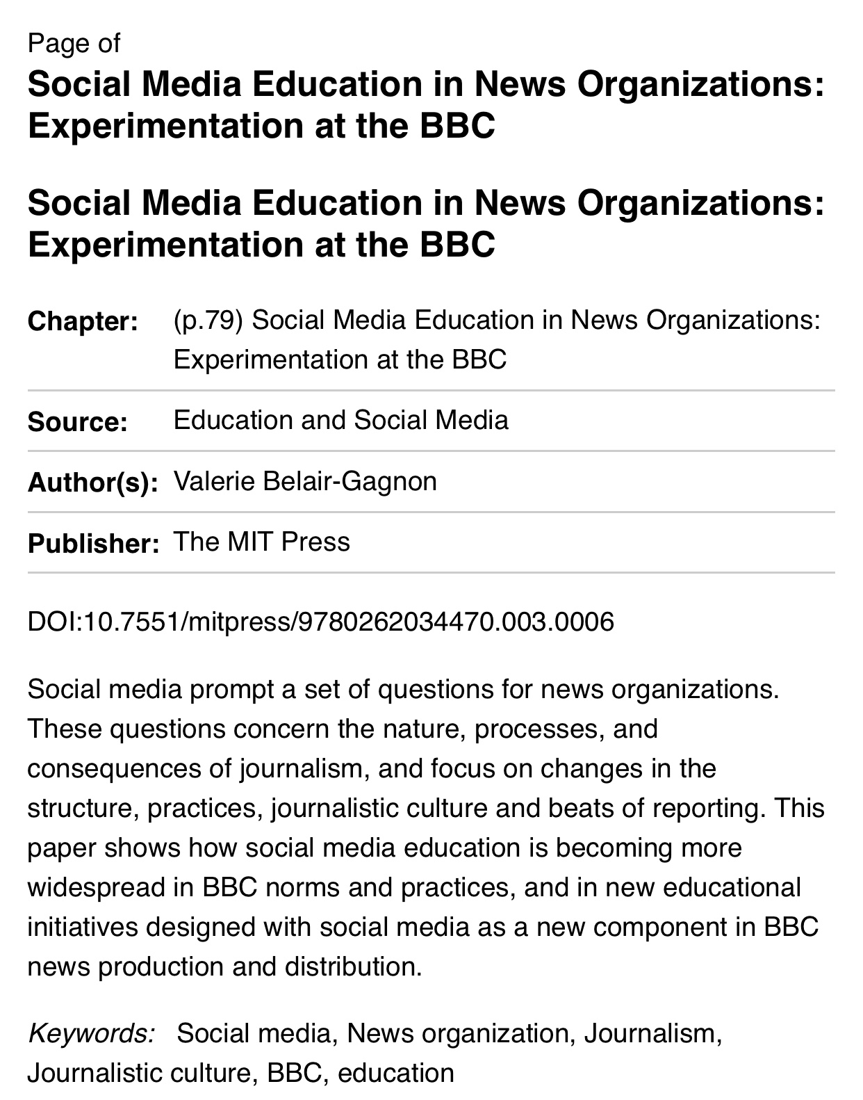 영국의 BBC 방송의 소셜 미디어 정책 실험은 미디어 교육에 기여할 수 있는 실천적 모델을 제공해 학문적인 조명을 받기도 했습니다.