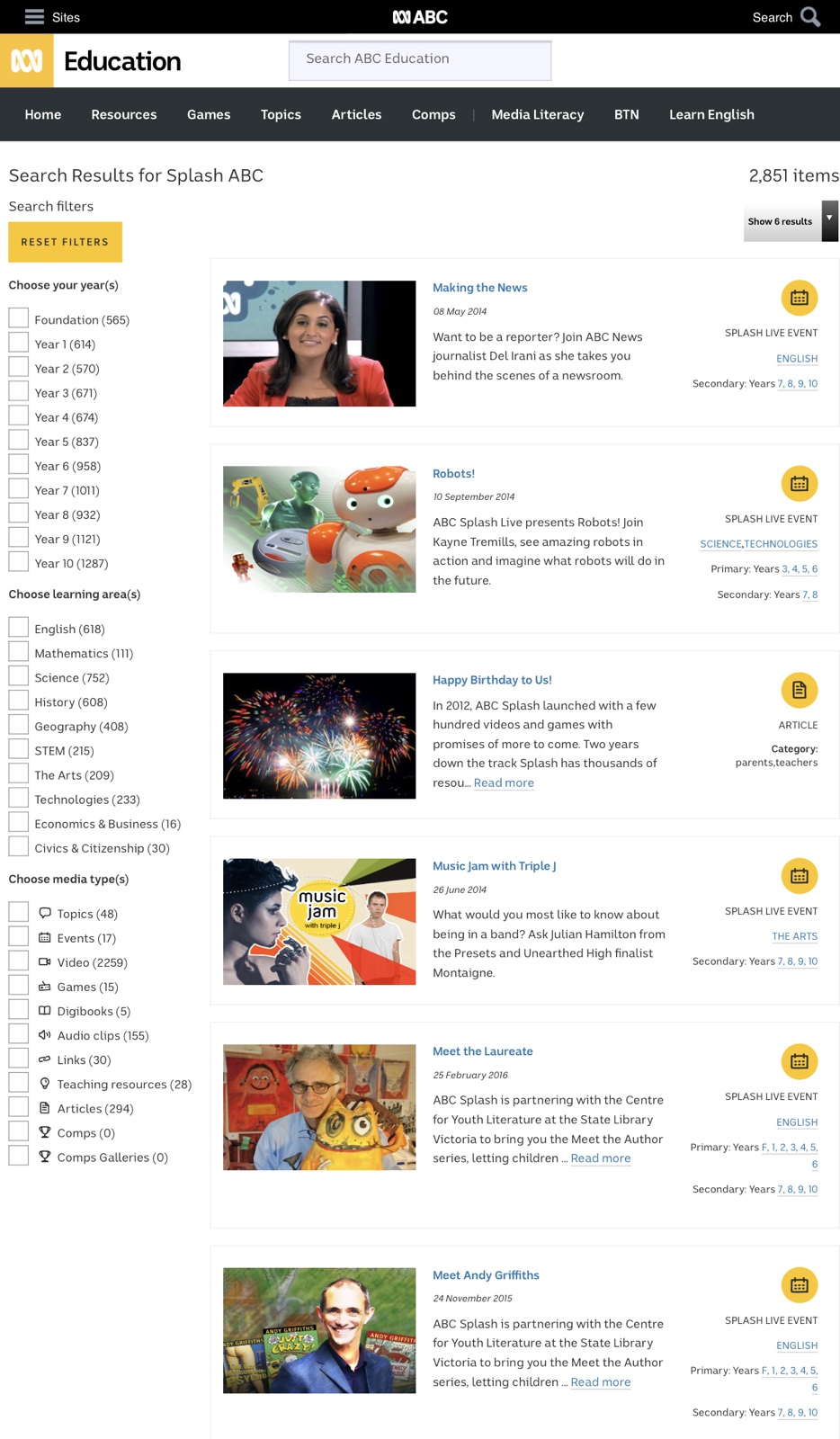 호주의 ABC 방송은 Splash ABC라는 웹사이트를 통해 다양한 학교 과목과 주제 학습에서 활용할 수 있는 생생한 영상 자료, 게임 등을 제공하고 있습니다.
