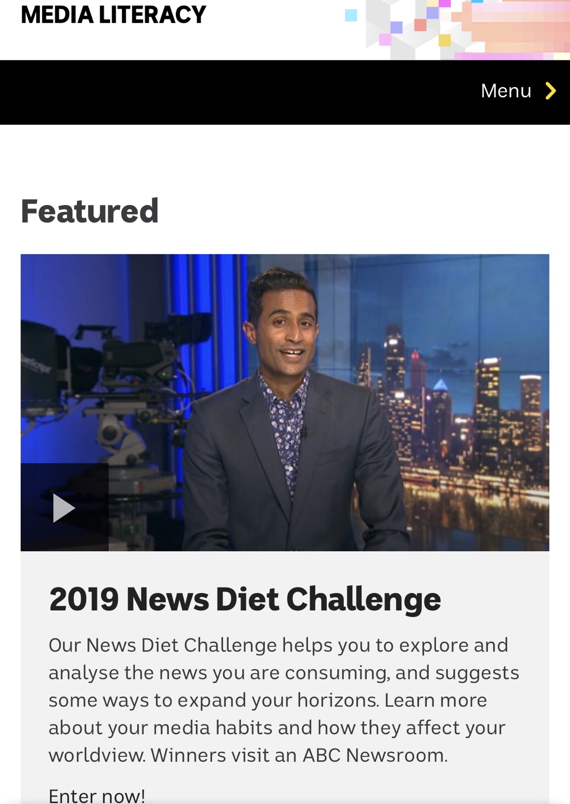 ABC 방송에서는 ‘미디어 리터러시’ 메뉴를 별도 구성하여 뉴스에 대한 이해, 뉴스 분석하기 방법과 예시 등을 일반인들도 보고 이해할 수 있는 생생한 자료로 제공하고 있습니다.