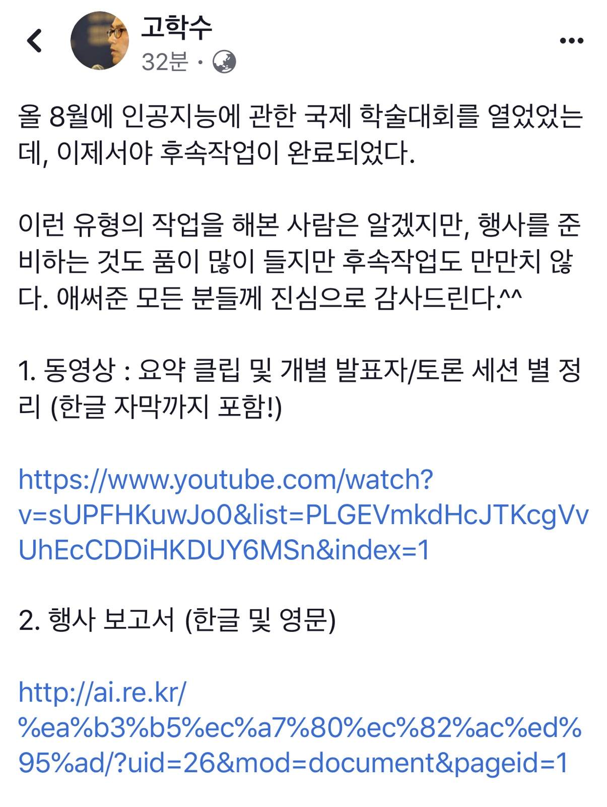 - 동영상 : 요약 클립 및 개별 발표자/토론 세션 별 정리 (한글 자막까지 포함!)