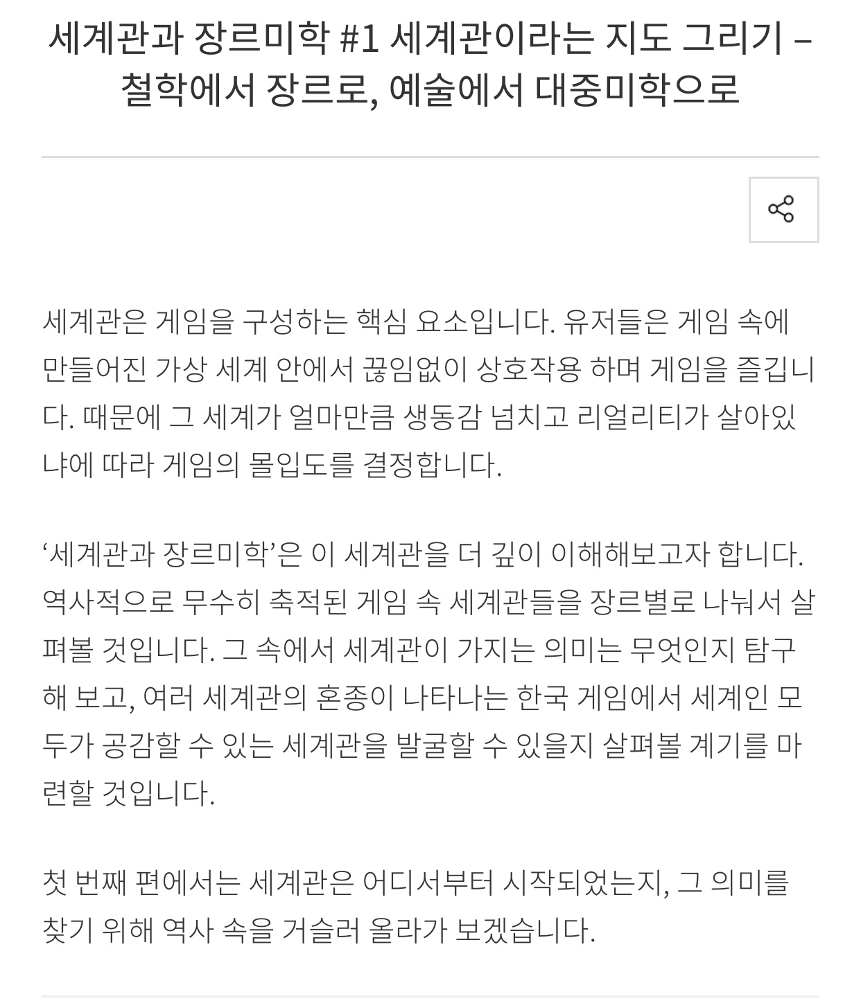 세계관과 장르미학 #1 세계관이라는 지도 그리기 – 철학에서 장르로, 예술에서 대중미학으로