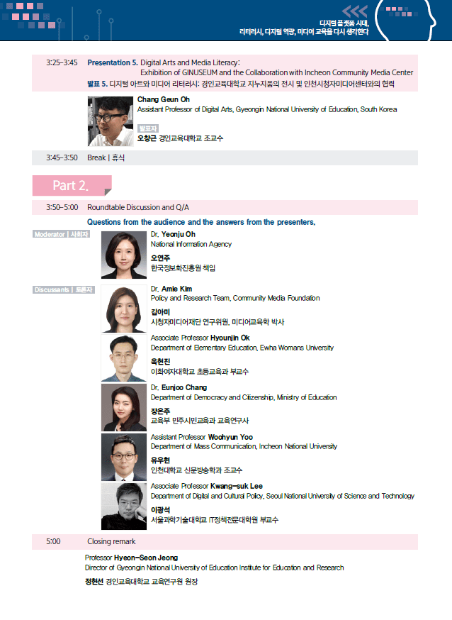 우리의 정체성과 사회적 현실을 형성하는 디지털 미디어에 대한 비판적 이해를 목적으로 한 사회적 담론의 근거를 제공하는 엄정한 연구의 역할이 필요함에 공감하고 후속 연구를 위한 협력을 모색하는 소중한 기회를 이 컨퍼런스가 마련할 수 있기를 바랍니다.
