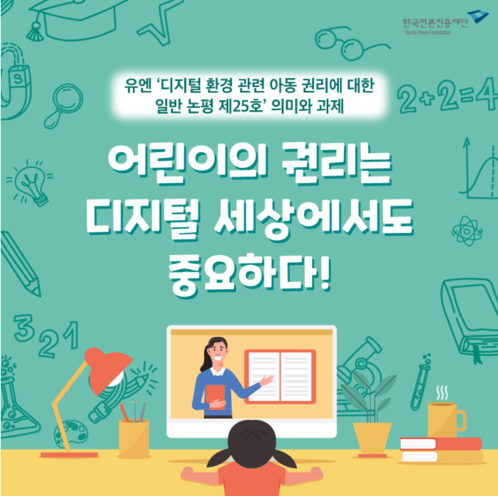이번에 발표된 일반 논평 25호에 대해 한국언론진흥재단에서 발행하는 <미디어 리터러시> 웹진에 수록한 글을 공유합니다. 유엔아동권리협약에 서명한 당사국인 한국 정부도 이번 논평에 포함된 내용들을 이행하기 위한 조치에 착수해야 할 의무가 있습니다.