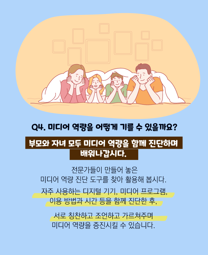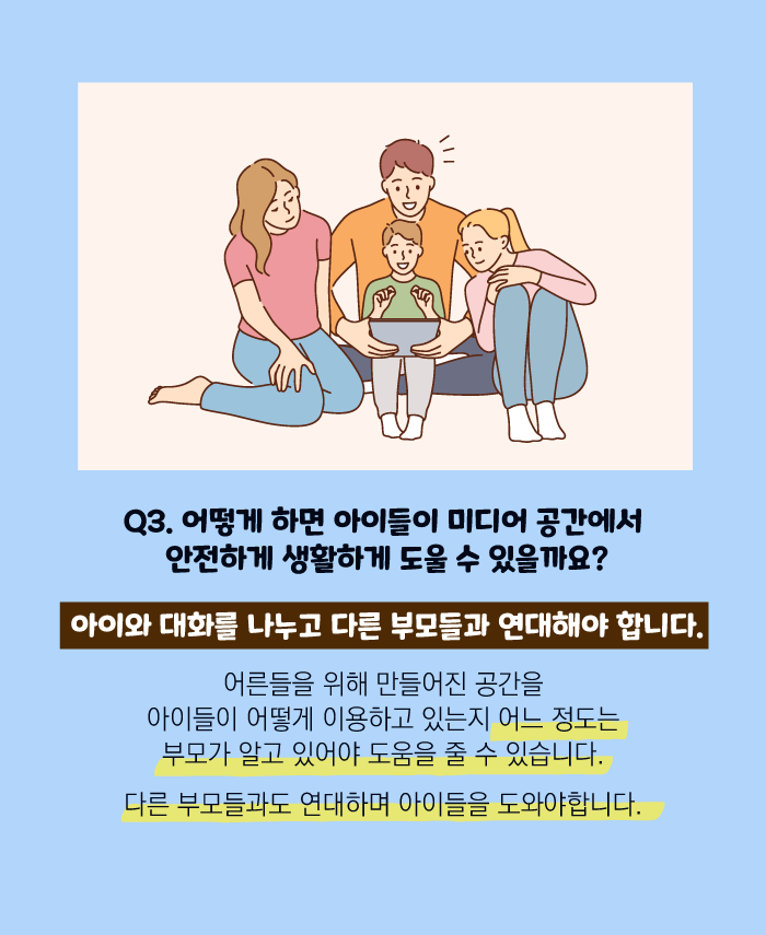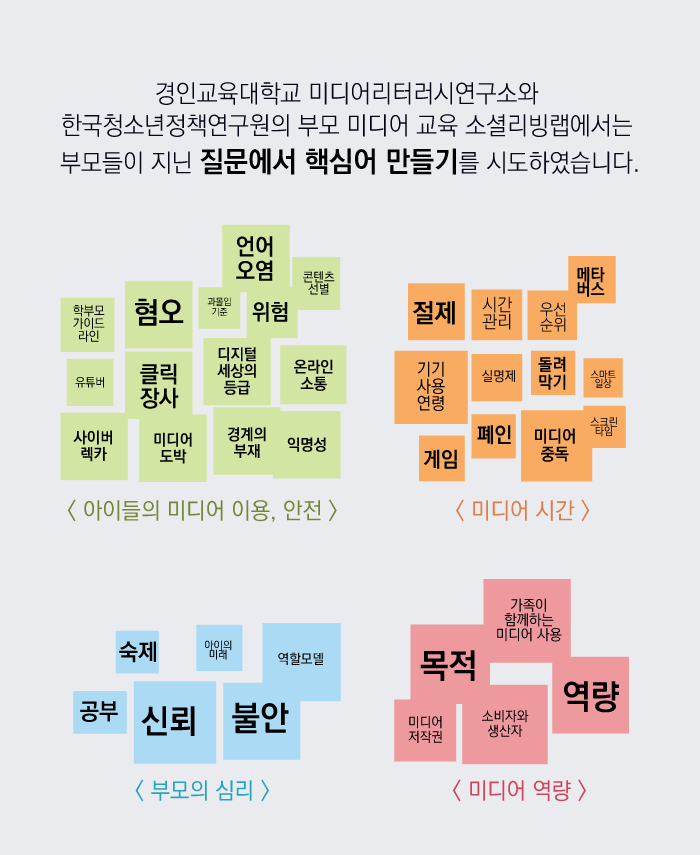 청소년 자녀의 부모들과 전문 연구자들이 함께 참여해 운영한 경인교대 미디어리터러시연구소의 “부모 미디어 교육 역량 강화를 위한 소셜리빙랩”의 결과물인 부모 미디어 교육 캠페인, ‘디지털 세상, 자녀와 함께 나아가기’ 카드뉴스가 완성되었습니다.