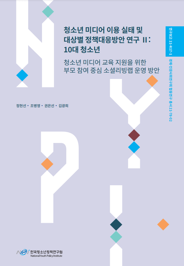 이 연구는 부모들이 어린이와 청소년의 미디어 이용에 대한 교육의 참여자로서의 실천적 경험을 공유하면서, 청소년의 미디어 이용에 대한 이해를 주도적으로 재구성하고 확장할 수 있는 부모 교육의 기회를 만들어가는 것이 필요하다고 보아, 부모 참여형 미디어 교육 프로그램을 개발하여 운영하는 ‘소셜 리빙랩’ 방법을 중심으로 이루어졌습니다.